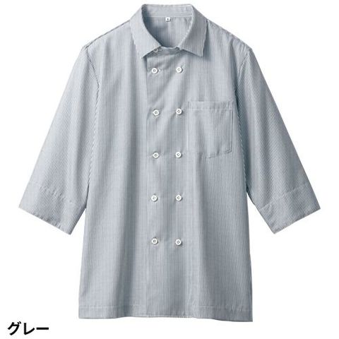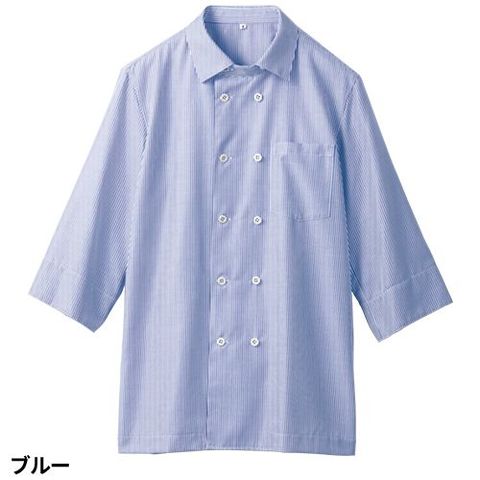 シャツ 制服 ユニフォーム 住商モンブラン コックコート風ストライプシャツ 七分袖 7分袖 SS003-22・72・92 飲食店 メンズ レディース カフェ レストラン おしゃれ かわいい 可愛い かっこいい 細身