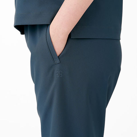 ストレッチ性に優れ上質感のある素材の男女兼用パンツ。