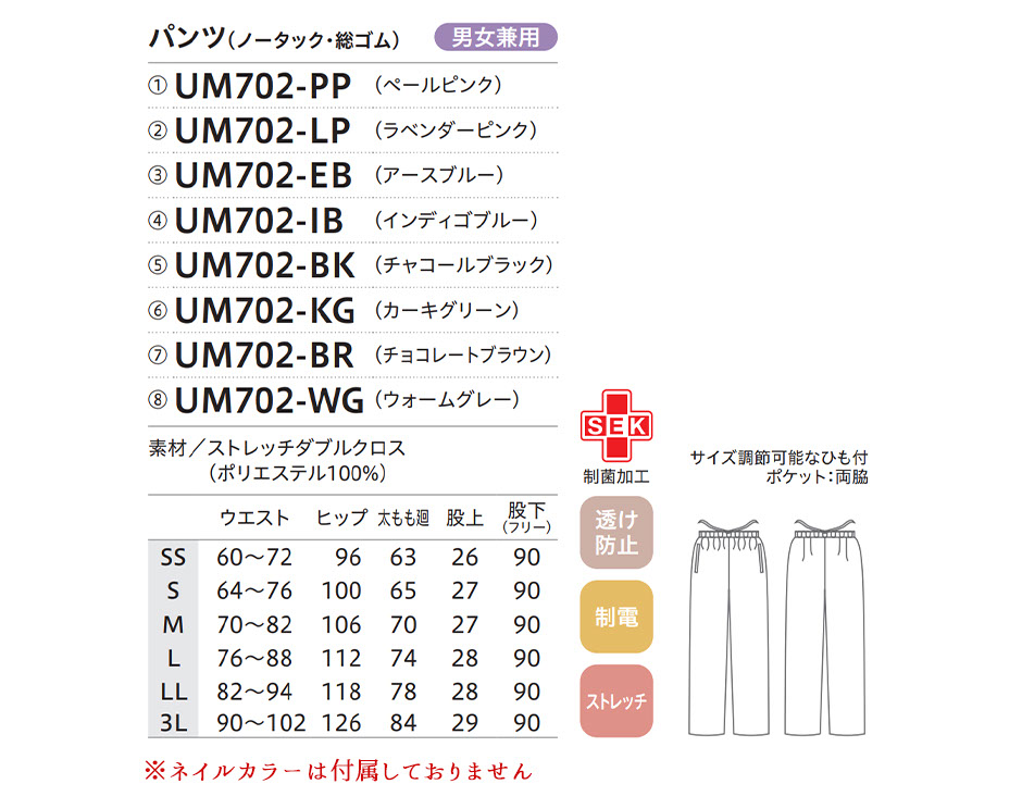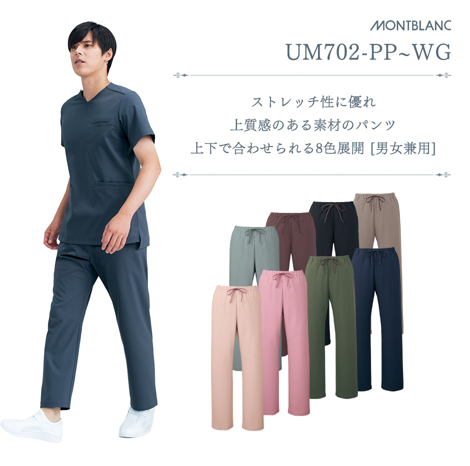 [ 特別価格 ]スクラブ 白衣 ユニセックス 住商モンブラン uka パンツ UM702 メンズ レディース 男女兼用 医療 制服 ユニフォーム 看護師 ナース 病院 エステ 美容 歯医者 サロン おしゃれ かわいい 可愛い 医療用 ウカ きれい 透けにくい 動きやすい 人気 おすすめ