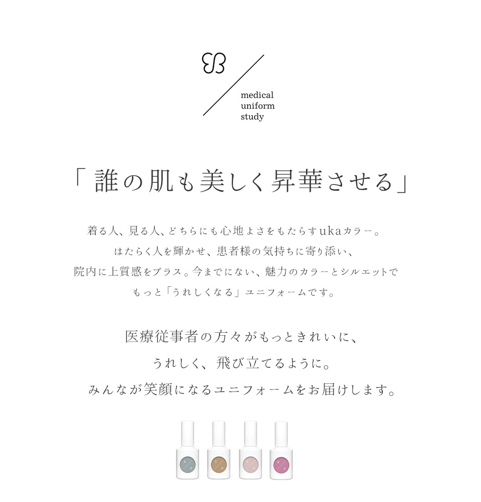 ノータック・総ゴム仕様。魅力のカラーと美シルエットで、もっと「うれしくなる」ユニフォーム。