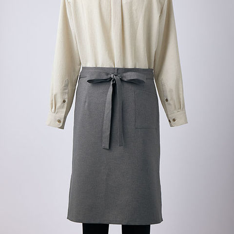 トップスのカラーに合わせて、左右どちらの前合せでも着用可能なサロンエプロン。