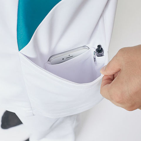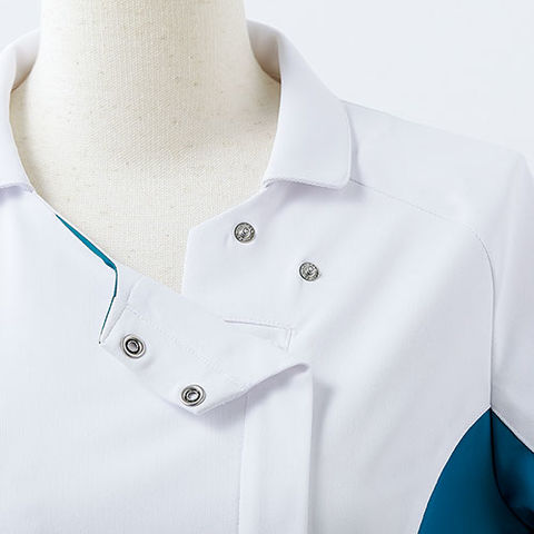| ■スナップボタン 着脱しやすい肩口スナップ仕様。 ■ウエストループ 時計などを掛けるのに便利。 ■動きをサポート スムーズな肩まわりの動きを実現するパターンデザイン。 ■内ポケット 脇ポケットには小物を整理しやすい内ポケット付き ■サイドベンツ ヒップラインをカバーし、すっきりした後ろ姿に。 |