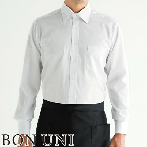 白シャツ ホワイト ワイシャツ レギュラーカラー ボンユニ BONUNI ボストン 長袖シャツ(首回り36-45) 白シャツ 14112-81 飲食店 制服 ユニフォーム メンズ レストラン カフェ おしゃれ かっこいい男性用 事務 オフィス ビジネス フォーマル
