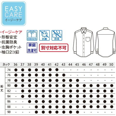 | 長袖シャツ(首回り36-45) 白シャツ |