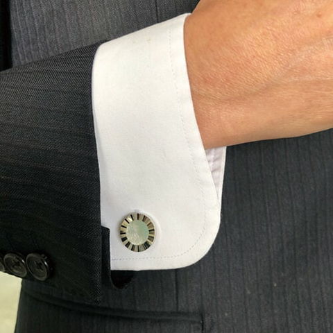 | 左胸ポケット、袖口2コ釦、衿ハネ防止、カフリンク仕様 |
