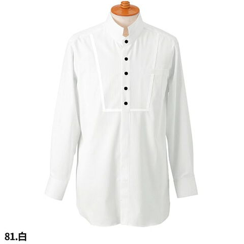 白シャツ ホワイト スタンドカラー 立ち襟 制服 ユニフォーム ボンユニ BONUNI ボストン 長袖シャツ(男性用) 24112-81 飲食店 メンズ レストラン カフェ 厨房 中華 おしゃれ かっこいい男性用 定番 無地