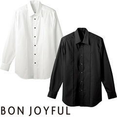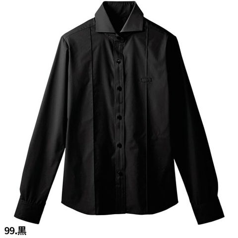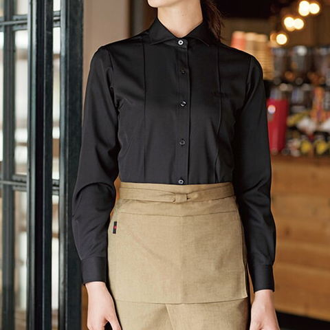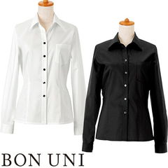 白シャツ ホワイト 黒シャツ ブラック ワイシャツ ワイドカラー ボンユニ BONUNI ボストン 長袖ホリゾンタルカラーシャツ 24215-81 24215-99 飲食店 制服 ユニフォーム レディース レストラン カフェ おしゃれ かわいい女性用 事務 オフィス ビジネス フォーマル
