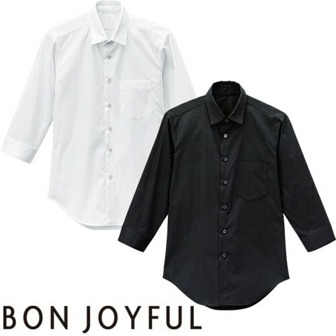 白シャツ ホワイト 黒シャツ ブラック ワイシャツ レギュラーカラー ボンユニ BONUNI ボストン 七分袖シャツ 24312 飲食店 制服 ユニフォーム メンズ レディース レストラン カフェ おしゃれ かわいい かっこいい7分袖 男女兼用 事務 オフィス ビジネス フォーマル