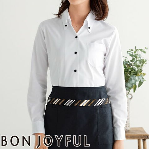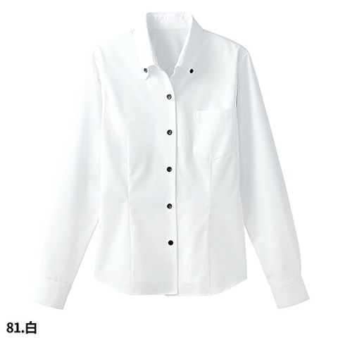 白シャツ ホワイト ワイシャツ ボンユニ BONUNI ボストン 長袖ボタンダウンシャツ 34205-81 飲食店 制服 ユニフォーム レディース レストラン カフェ おしゃれ かわいい女性用 定番 無地