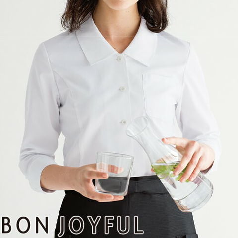 白シャツ ホワイト ワイシャツ レギュラーカラー ボンユニ BONUNI ボストン 七分袖ブラウス 34213-81 飲食店 制服 ユニフォーム レディース レストラン カフェ おしゃれ かわいい7分袖 女性用 事務 オフィス ビジネス フォーマル