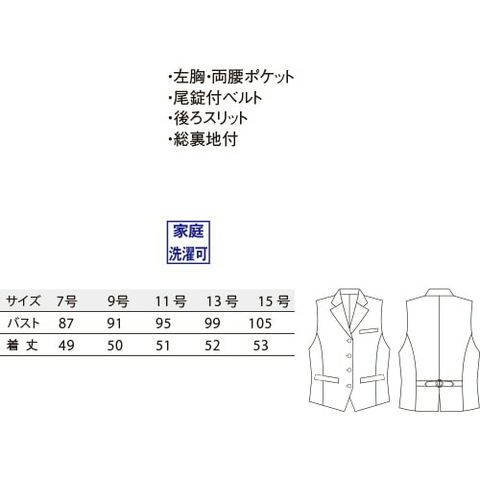 | 左胸・両腰ポケット、尾錠付ベルト、後ろスリット、総裏地付 |
