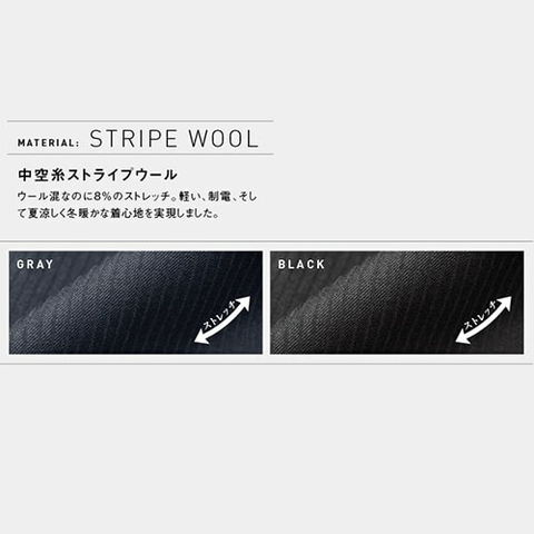 ウール混なのに8%のストレッチ。軽い、制電、そして夏涼しく冬暖かな着心地を実現しました