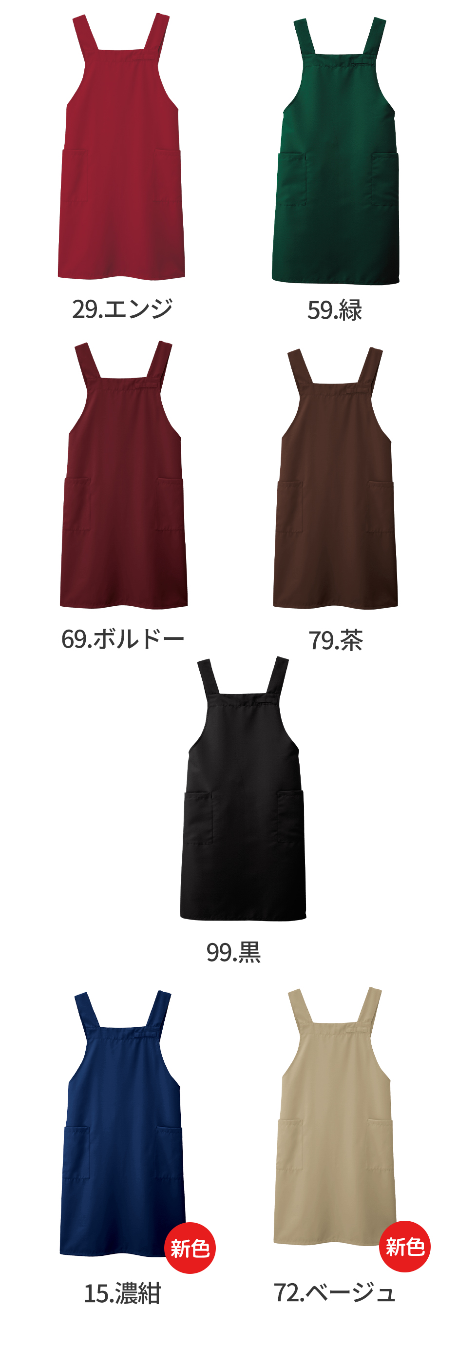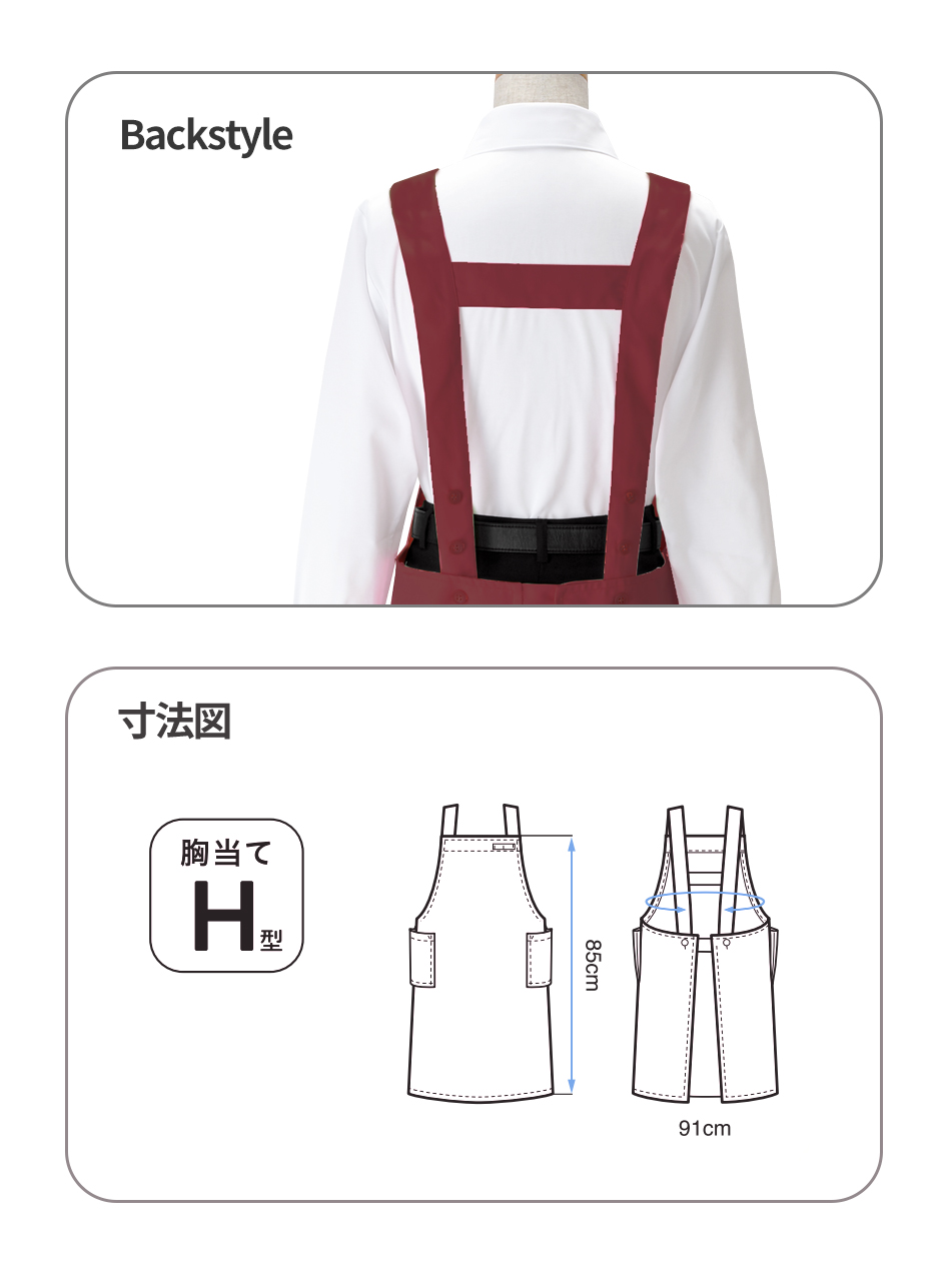 胸当てエプロン H型 ボンユニ BONUNI ボストン 胸当てエプロン 27326-29、27326-59、27326-69、27326-79、27326-99、27326-15、27326-72 飲食店 制服 ユニフォーム レストラン カフェ おしゃれ かわいい 可愛い かっこいい