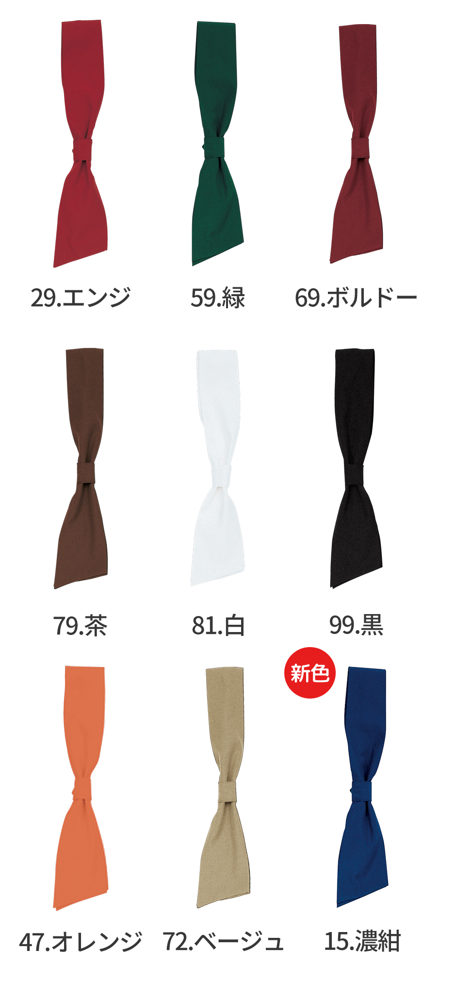 【メール便対応】コックタイ ネクタイ スカーフ 制服 ユニフォーム ボンユニ BONUNI ボストン ワンタッチコックタイ 28323-29、28323-47、28323-59、28323-69、28323-72、28323-79、28323-81、28323-99、28323-15 飲食店 レスト