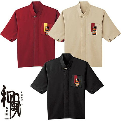 シャツ 和風 制服 ユニフォーム 半袖 ボンユニ BONUNI ボストン 和風シャツ(パッチワーク付) 43305-28、43305-71、43305-99 飲食店 メンズ レディース 居酒屋 蕎麦屋 そば屋 うどん屋 屋台 ラーメン屋 おしゃれ かわいい かっこいい