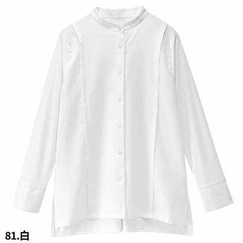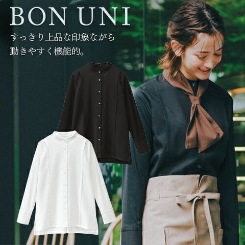 ブラウス オフィス レディース 長袖 シャツ 白 ワイシャツ 無地 形状記憶 UVカット 洗える シンプル 立ち襟 シャツ ボンユニ BONUNI ボストン 24246- 81 99 飲食店 制服 ユニフォーム ビジネス レストラン カフェ おしゃれ かわいい
