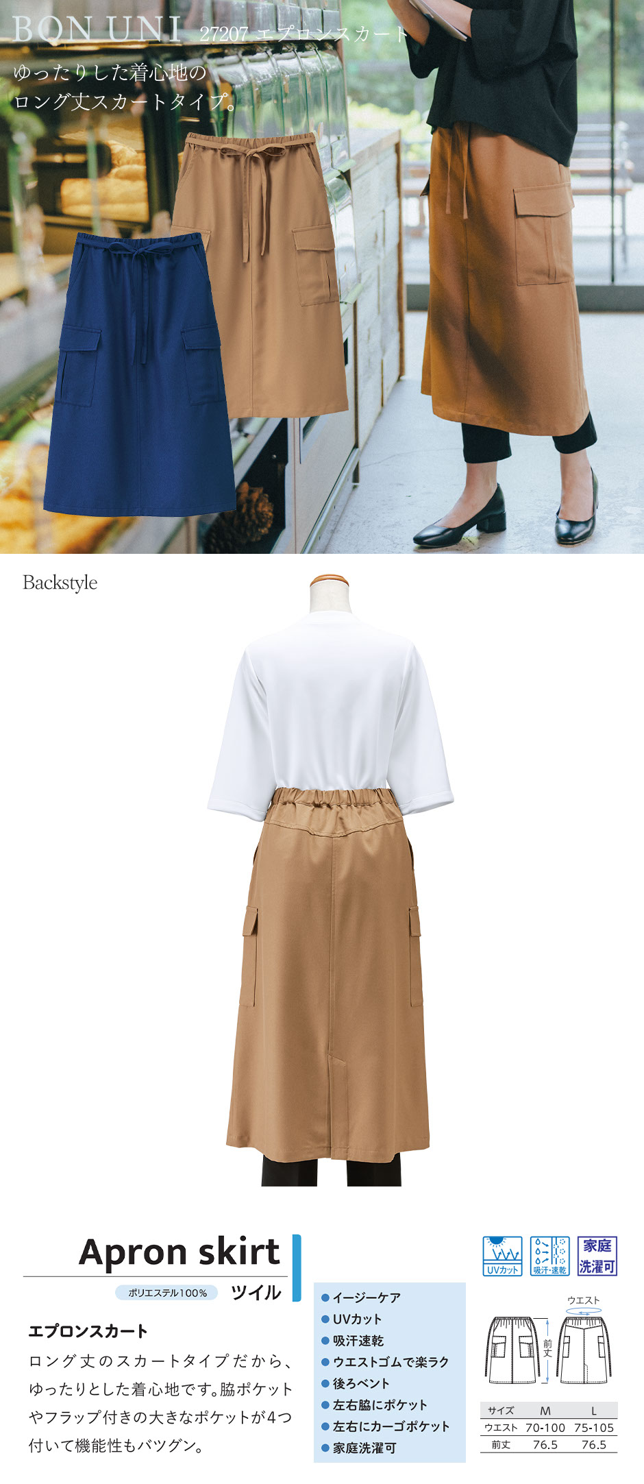 カフェ エプロン 前掛 制服 ユニフォーム ロング丈 長め ボンユニ BONUNI ボストン エプロンスカート 27207- 15 74 飲食店 ユニフォーム レストラン バー 居酒屋 ソムリエ おしゃれ かわいい 可愛い かっこいい 大きめ