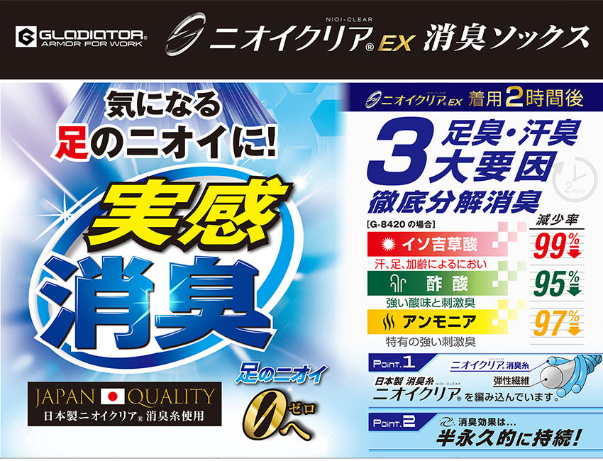 安心の日本品質、足臭・汗臭3大要因徹底分解消臭!