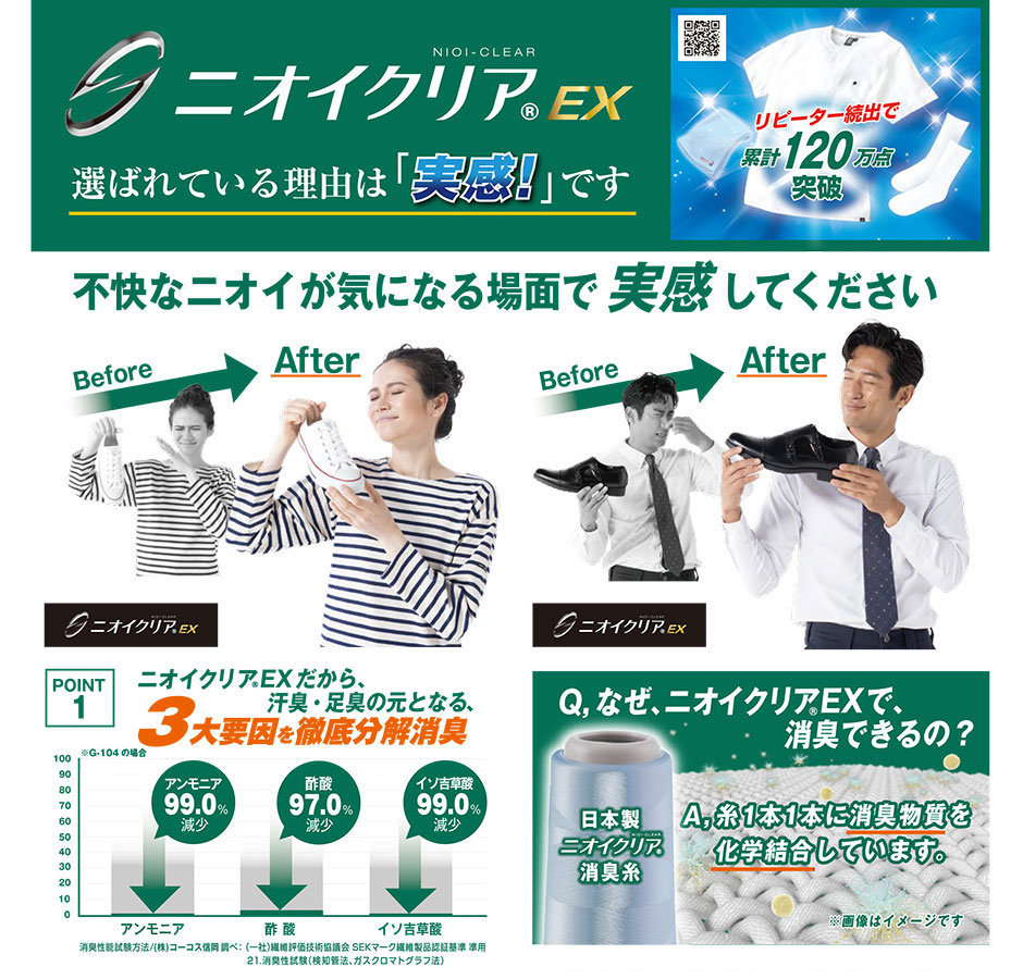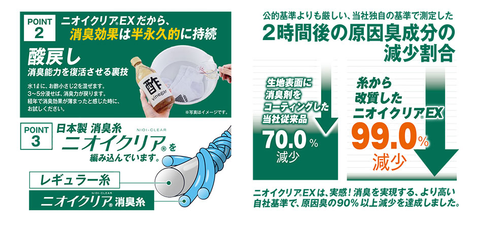 ■日本製消臭糸ニオイクリアクリアを編み込んでいます。