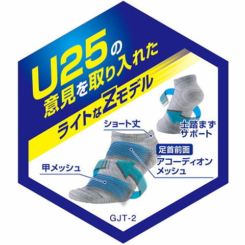 | アンダー25の意見を取り入れたライトなZモデルくるぶし下のショート丈タイプ アコーディオンメッシュ仕様 ジャガードロゴ入り 土踏まずサポート |