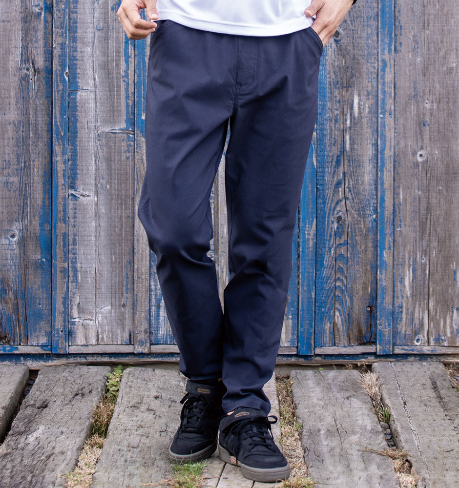 プレーンな表情と若干テーパードさせたシルエット、ベルトループと併せて幅広いワークシーンにも対応します。