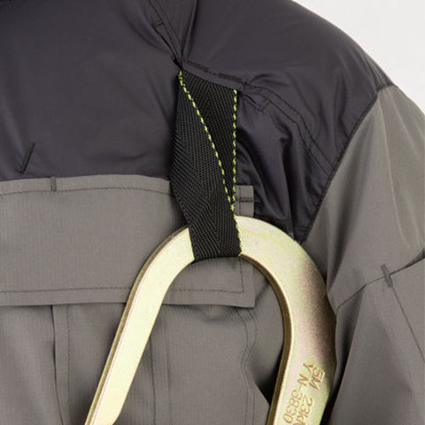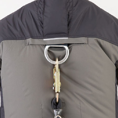 ●フルハーネス対応:収納式のランヤードフック、背中のランヤード取出し口装備
