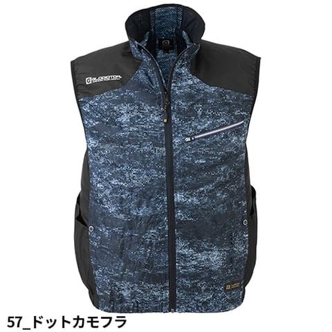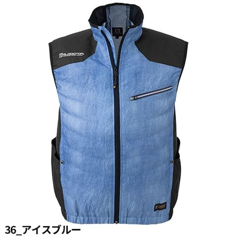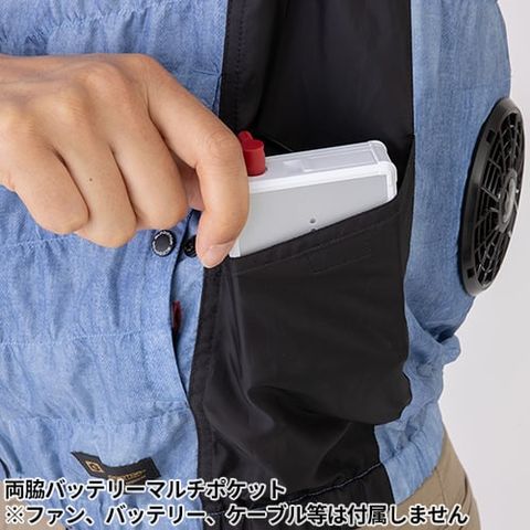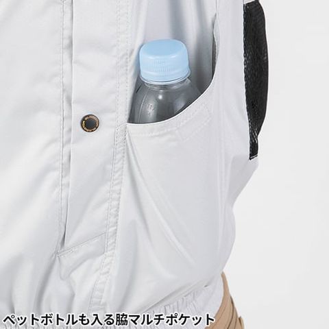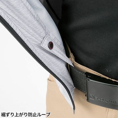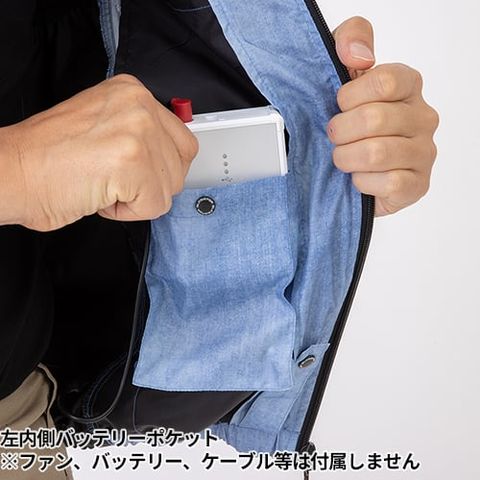 | 日傘遮熱仕様(肩部分)、遮熱マイナス11℃、風ダウン仕様、表面がダウンのように凹凸になる特殊縫製で膨らみをクールに魅せる独自機能、反射テープ(背中)、衿裏メッシュ、背中風気路、胸プリントファスナーポケット、両脇バッテリーマルチポケット、裾ずり上がり防止ループ |