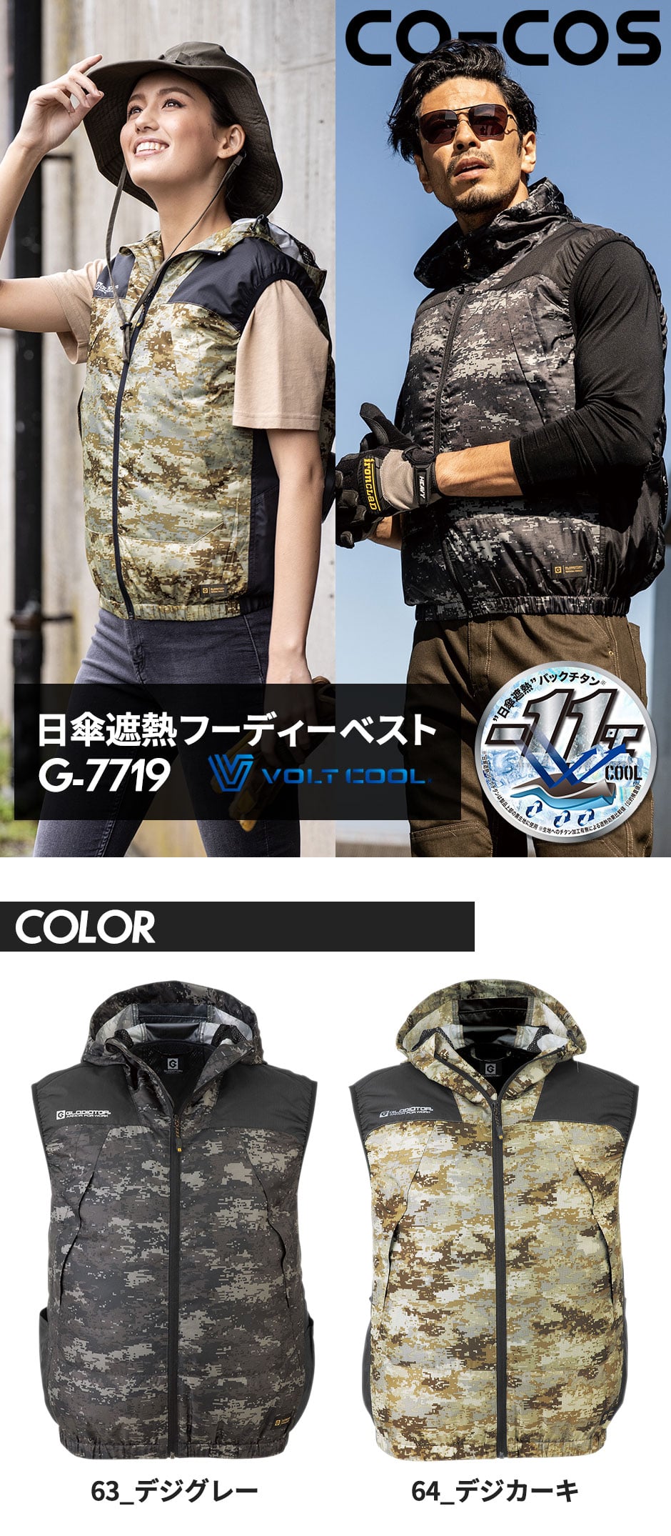 【即納】EFウェア ベスト コーコス信岡 CO-COS VOLT COOL ボルトクール 日傘遮熱フーディーベスト (ファン無し) SS-5L 大きいサイズ 空調 服 空調作業服 作業着 作業服 熱中症対策 遮熱効果 チタン加工 UVカット G-7719