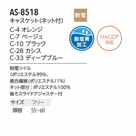 【メール便対応】帽子 制服 ユニフォーム チトセ アルベ arbe キャスケット(ネット付) AS-8518 飲食店 カフェ ベーカリー パン屋 レストラン おしゃれ かわいい