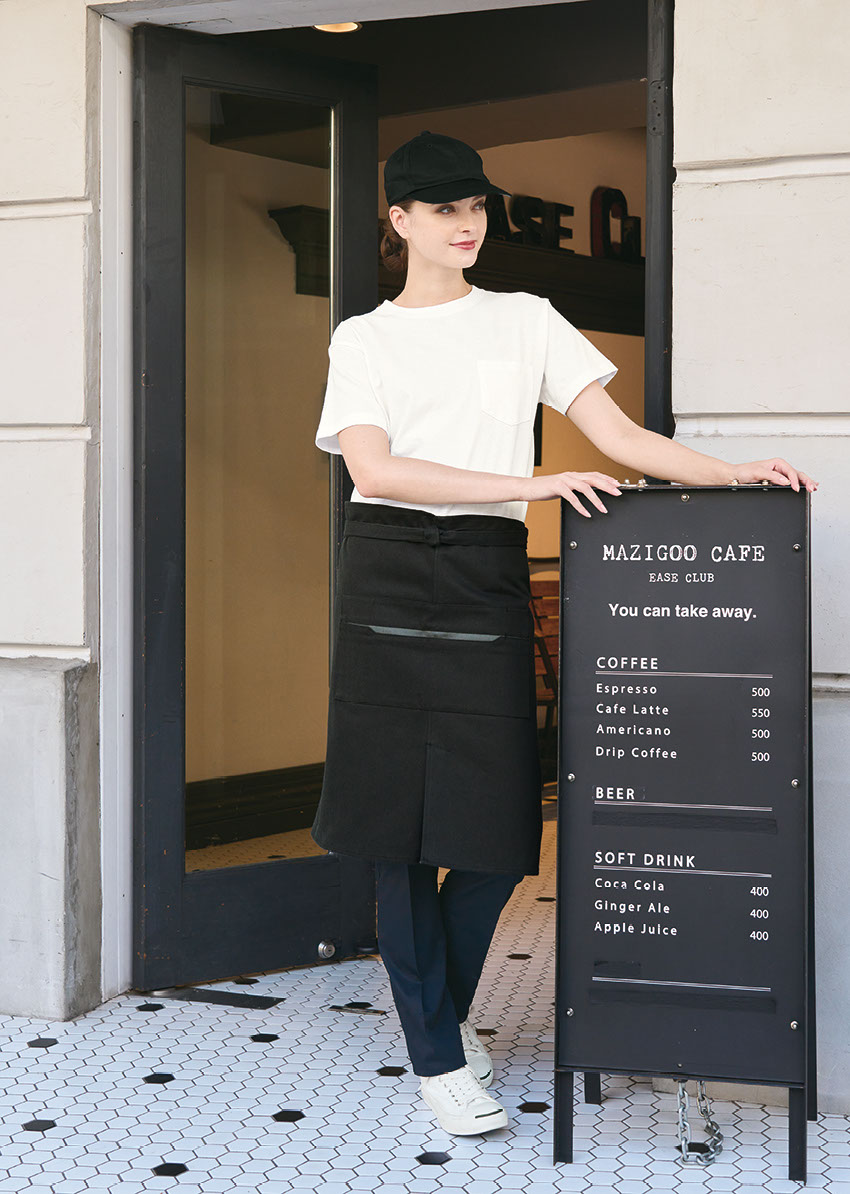 ふっくらとした風合いに胸のポケットがアクセント。どんなお店にも合わせやすいベーシックな5色展開です。