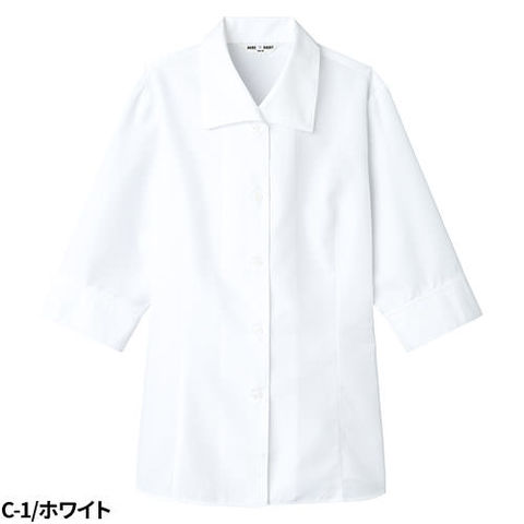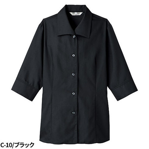 白シャツ ホワイト 黒シャツ ブラック ワイシャツ ワイドカラー チトセ アルベ arbe 七分袖ブラウス BL-8058 飲食店 制服 ユニフォーム レディース レストラン カフェ おしゃれ かわいい7分袖 女性用 事務 オフィス ビジネス フォーマル