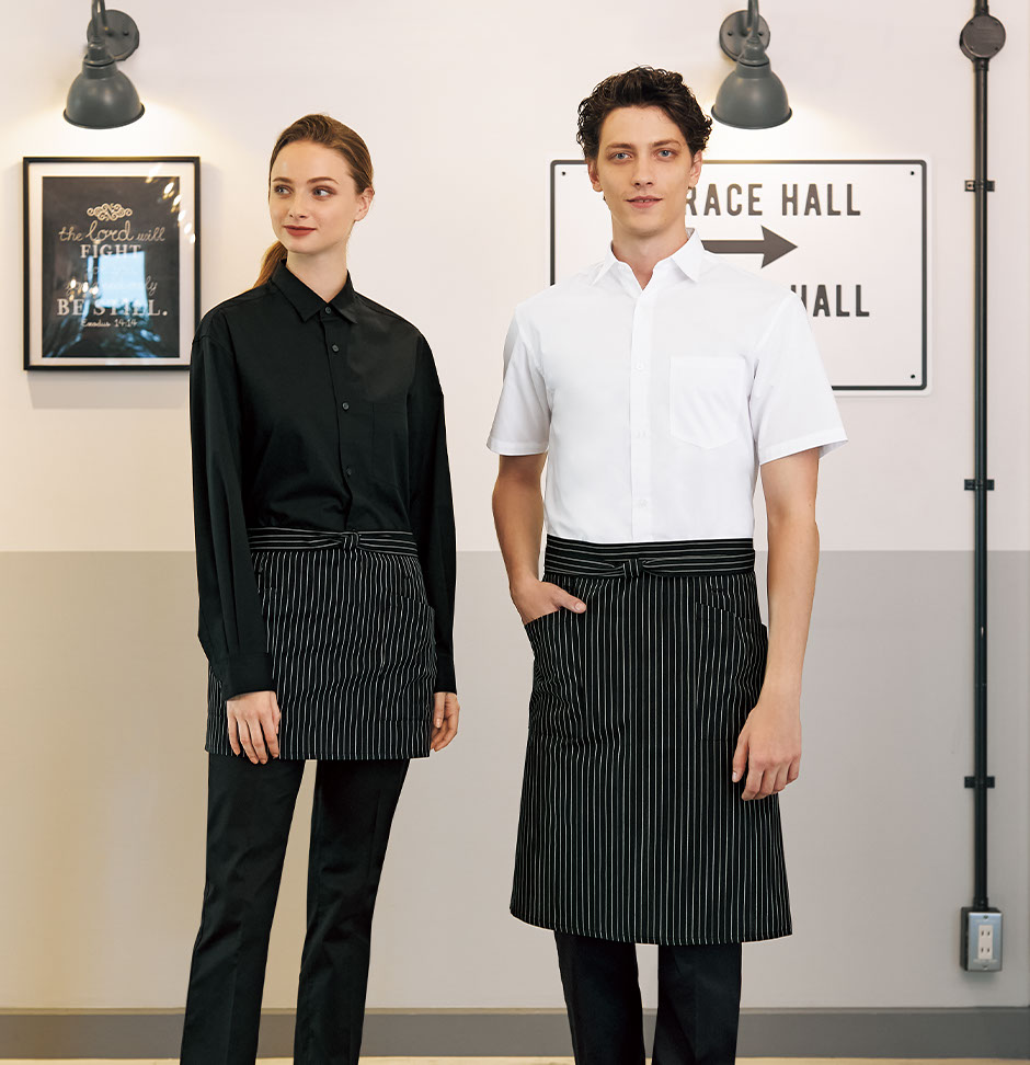 【メール便対応】エプロン 前掛 制服 ユニフォーム ショート丈 短め チトセ アルベ arbe ストライプ 38cm丈 ショートエプロン T-7933 飲食店 ユニフォーム カフェ レストラン バー 居酒屋 ソムリエ おしゃれ かわいい 可愛い かっこいい