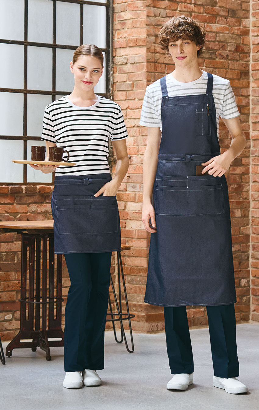 胸当てエプロン X型 たすき掛け クロス チトセ アルベ arbe デニム エプロン T-8262 飲食店 制服 ユニフォーム レストラン カフェ おしゃれ かわいい 可愛い かっこいい