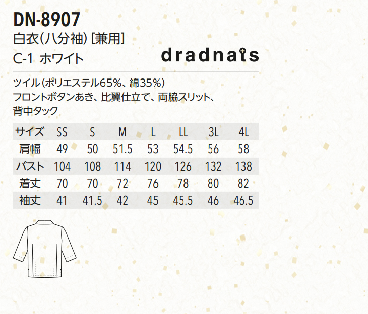 白衣 調理白衣 制服 ユニフォーム チトセ アルベ arbe 白衣(八分袖)[兼用] DN8907 飲食店 厨房服 調理服 寿司屋 和食店 割烹 料亭 居酒屋 おしゃれ かっこいい プロ仕様