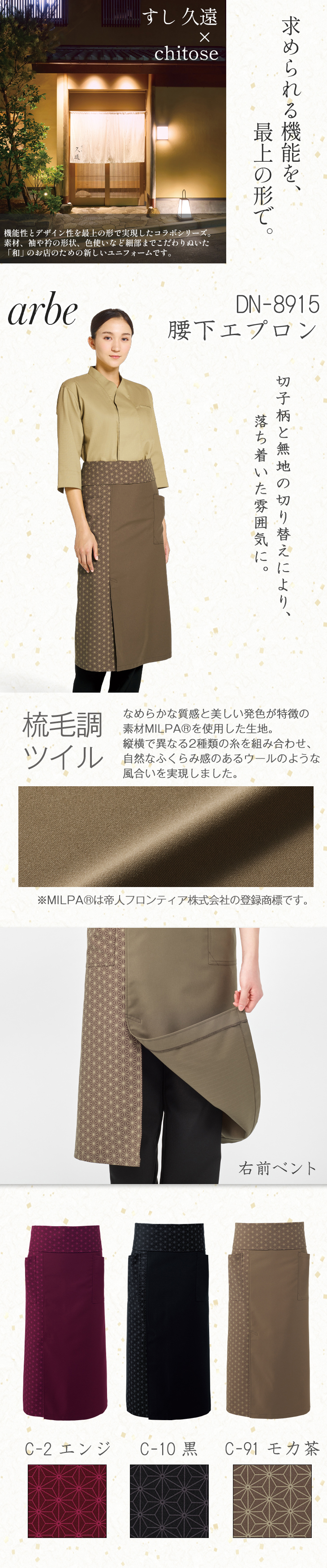 エプロン 和風 ロング丈 チトセ アルベ arbe 腰下エプロン DN8915 飲食店 制服 ユニフォーム 居酒屋 和食店 酒屋 蕎麦屋 業務用 おしゃれ かわいい かっこいい