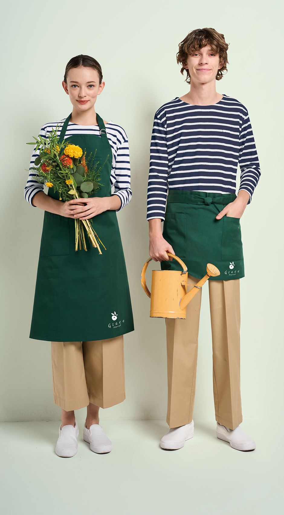 シックなカラーのユニフォームはナチュラルなお店の雰囲気と調和します。