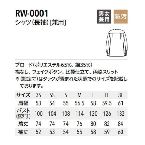 シャツ 制服 ユニフォーム チトセ アルベ arbe シャツ(長袖)[兼用] RW-0001 飲食店 メンズ レディース カフェ レストラン おしゃれ かわいい かっこいい