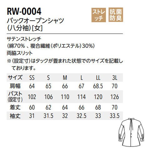 Tシャツ カットソー 制服 ユニフォーム チトセ アルベ arbe バックオープンシャツ(八分袖)[女] RW-0004 飲食店 レディース 居酒屋 ラーメン屋 そば屋 うどん屋 おしゃれ かわいい 可愛い 丈夫 快適