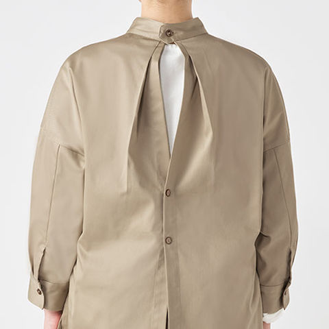 背中のボタンは、開けても閉めても美しいシルエット。ほどよい抜け感とモダンさが同居するスタイルに。