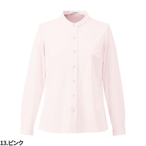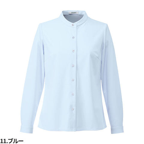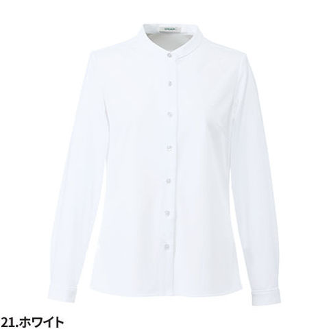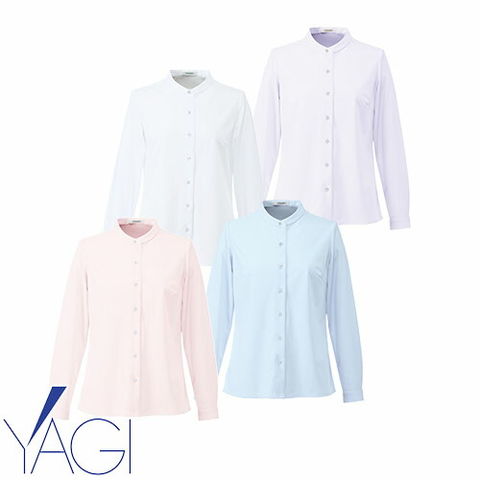 白シャツ ホワイト スタンドカラー 立ち襟 制服 ユニフォーム YAGI ヤギ 長袖ニットブラウス U8121 飲食店 レディース レストラン カフェ 厨房 中華 おしゃれ かわいい女性用 定番 無地