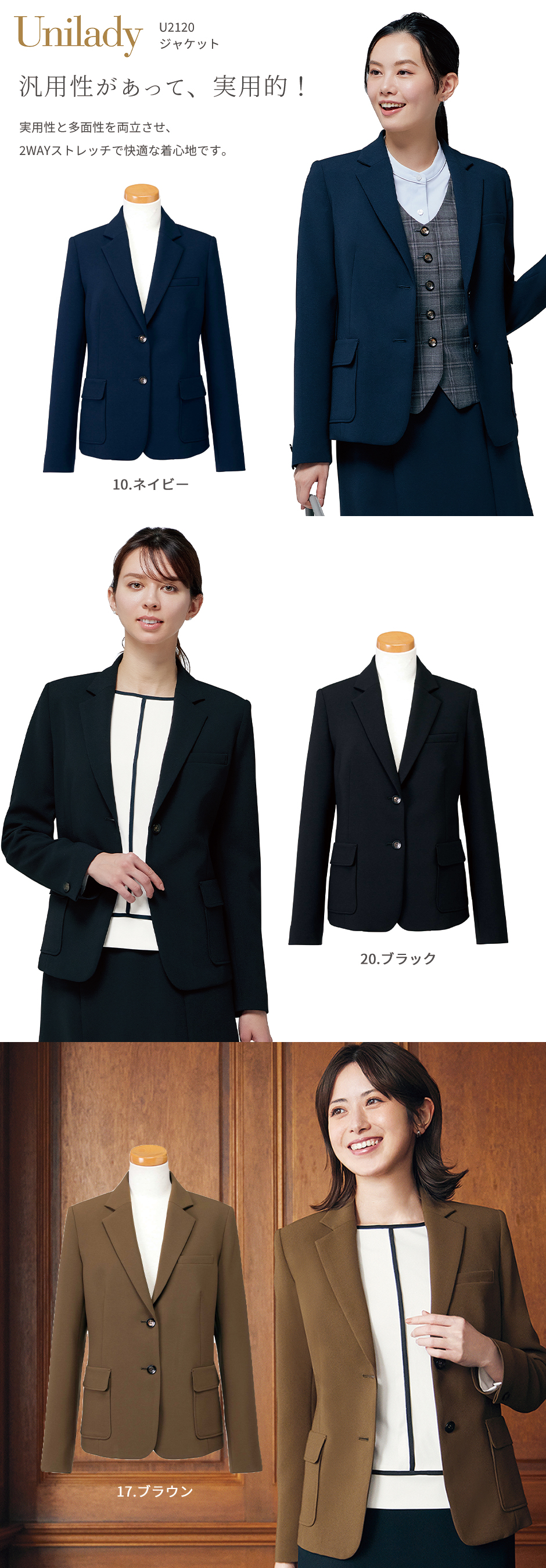 汎用性があって、実用的!「マルチフェイス」シリーズ。クラシカルな気品を感じさせながらもトレンド感を取り入れたラインナップは、ユニフォームの枠を超えて多様なシーンで活躍。