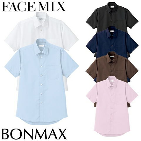 白シャツ ホワイト 黒シャツ ブラック ワイシャツ レギュラーカラー FACEMIX フェイスミックス メンズ 半袖シャツ FB5041M 飲食店 制服 ユニフォーム メンズ レストラン カフェ おしゃれ かっこいい 男性用 事務 オフィス ビジネス フォーマル