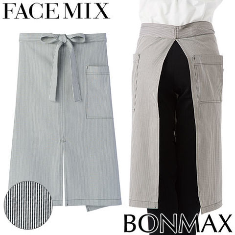 エプロン 前掛 制服 ユニフォーム ミドル丈 FACEMIX フェイスミックス ヒッコリーストライプエプロン FK7062 飲食店 ユニフォーム カフェ レストラン バー 居酒屋 ソムリエ おしゃれ かわいい 可愛い かっこいい