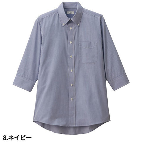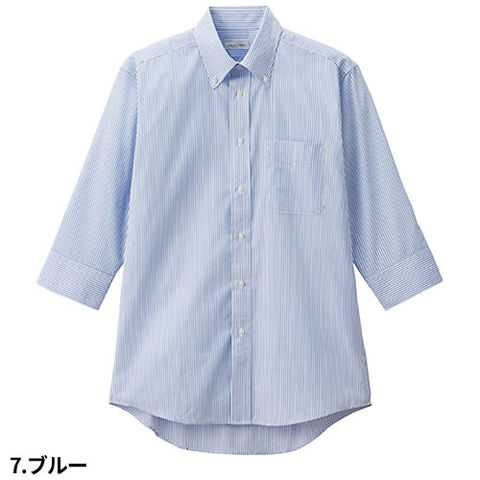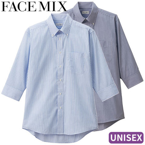 シャツ ワイシャツ FACEMIX フェイスミックス ユニセックスボタンダウン七分袖シャツ FB4564U 飲食店 制服 ユニフォーム メンズ レディース レストラン カフェ おしゃれ かわいい かっこいい