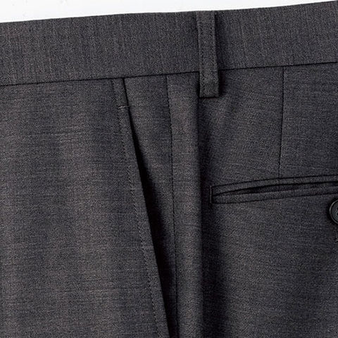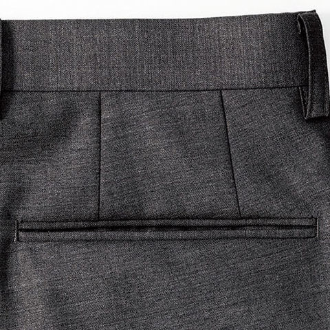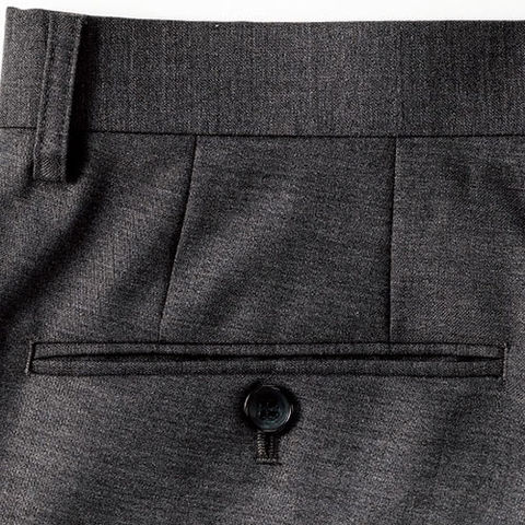 | 両脇斜めポケット、後ろ両脇両玉縁ポケット、左側ボタン留め |