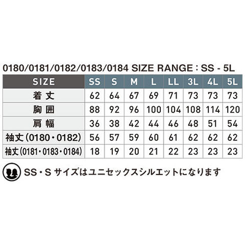 SS・Sサイズはユニセックスシルエットになります。