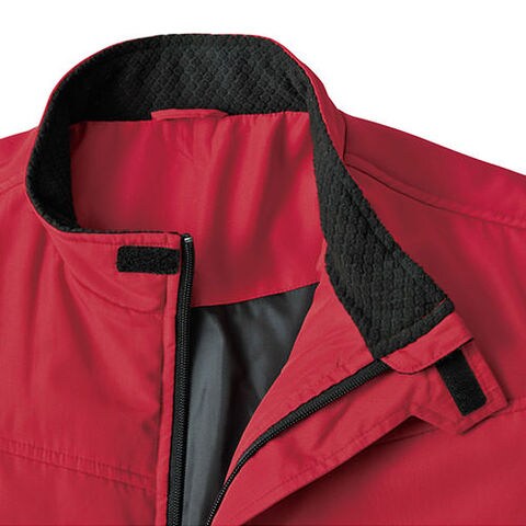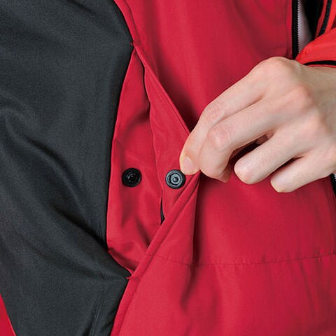 襟裏ブロックフリース、脇ポケットスナップボタン付、大型内ポケット、チンガード