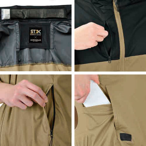 | 衿裏アイスポケット、胸ポケット、脇ポケット(左のみファスナー付)、腰ポケット |