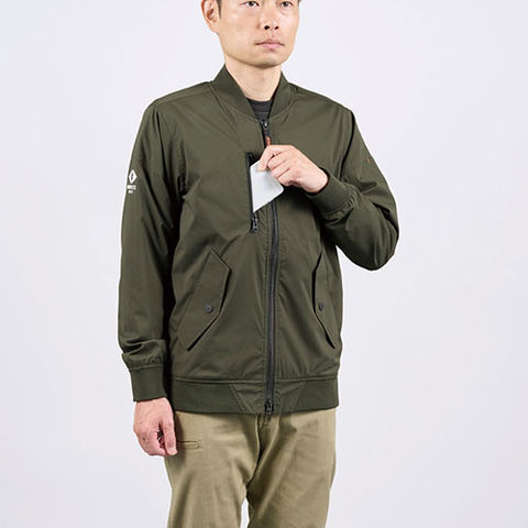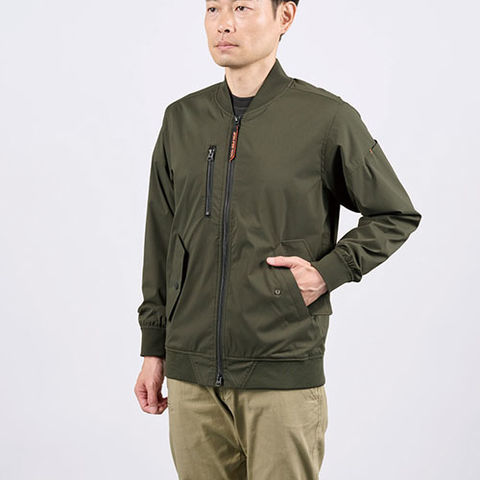 | 右胸ファスナーポケット、両脇ポケット(ドットボタン付)、左袖ペンポケット、袖口リブ、裾リブ、ダブルスライダー |