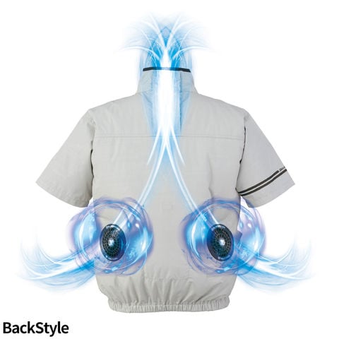 現在空調服(R)という用語が世間で使用されておりますが、本来「空調服(R)」とは株式会社空調服が夏場の衣服内気候環境を改善することを目的として発売している「電動ファン内蔵上着」の商品名ですので、こちらの商品は「空調服(R)」ではなく、同じような効果を目的として株式会社空調服以外のメーカーより発売されているEFウェア(電動ファン付きウェア)シリーズでございます。